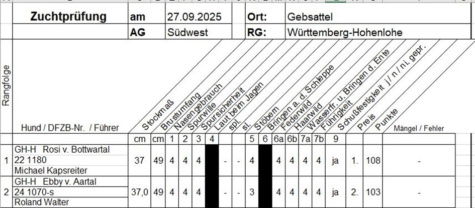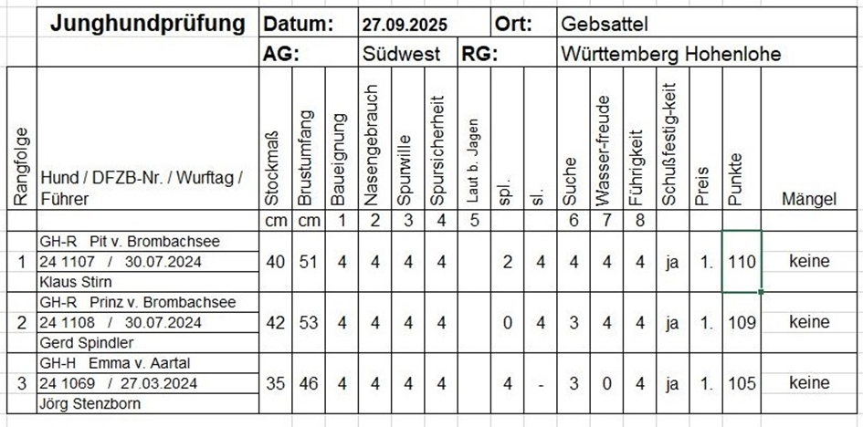 Bericht von der komb. JP und ZP am 27.9.2025 in Gebsattel der RG Württemberg Hohenlohe
